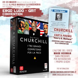 Sabato mattina ci sarà la possibilità di assistere alla conferenza di apertura, dove si parlerà con Mark Herman di Churchill, il gioco politico localizzato in italiano da Ergo Ludo Editions e che trovate qui, e del suo prossimo gioco, Triumvir, che potrete vedere in anteprima assoluta nel pomeriggio.